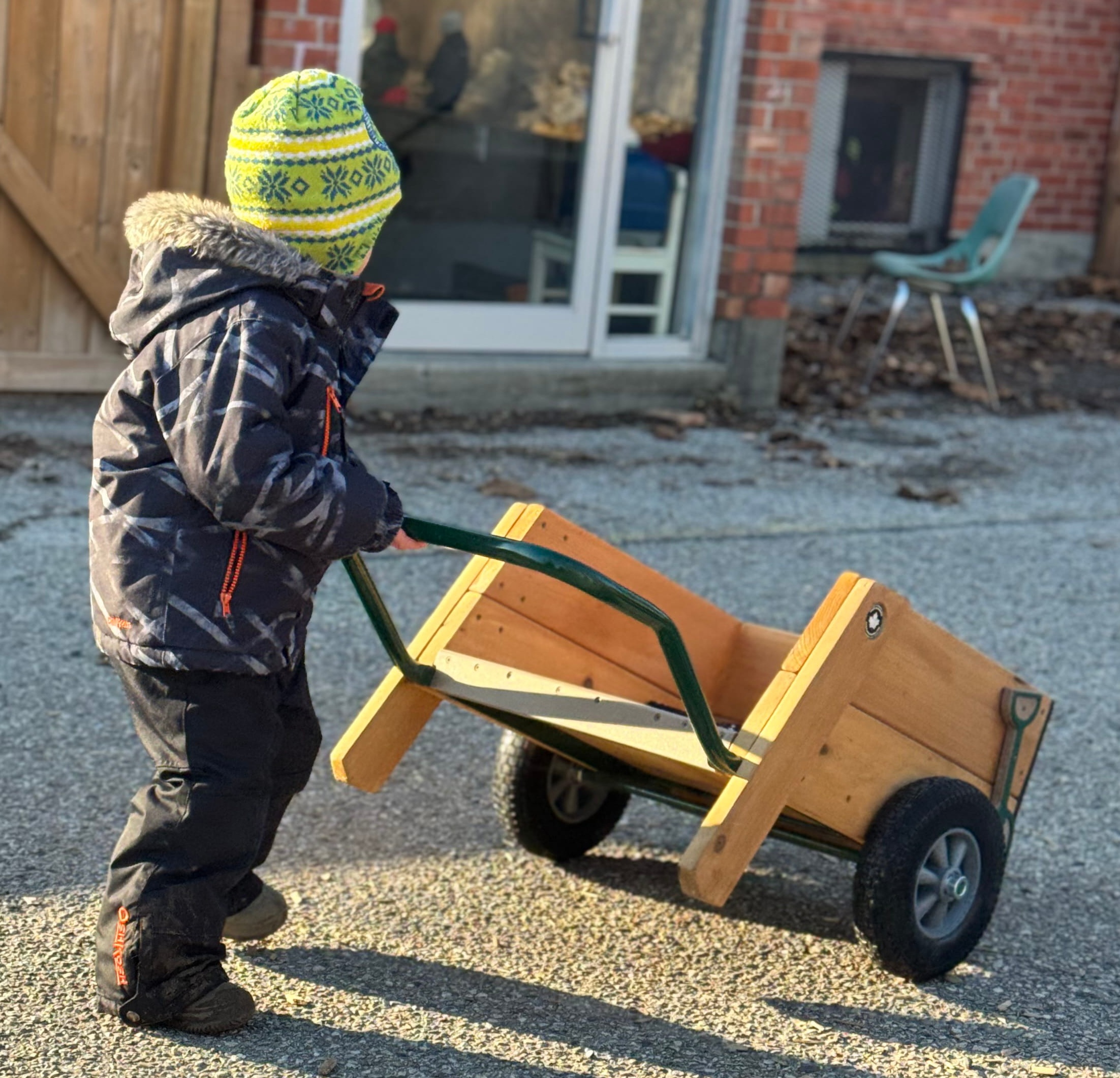 Let young builders get to work with our Playground Wheelbarrow! This sturdy, functional play accessory brings realistic construction fun to any playground or sandbox area, featuring durable wooden construction that stands up to enthusiastic hauling, digging, and transporting. With smooth-rolling wheels and a spacious cargo bed, children can load up sand, toys, natural materials, or their imaginations as they engage in cooperative play and develop gross motor skills. Available with three vibrant handle color options to perfectly complement your playground’s design, this wheelbarrow adds an interactive element that encourages physical activity, teamwork, and creative role-play. Perfect for sandboxes, nature play areas, or construction-themed playgrounds, this wheelbarrow transforms ordinary play into an exciting adventure where every child can be a hardworking builder, landscaper, or delivery hero!